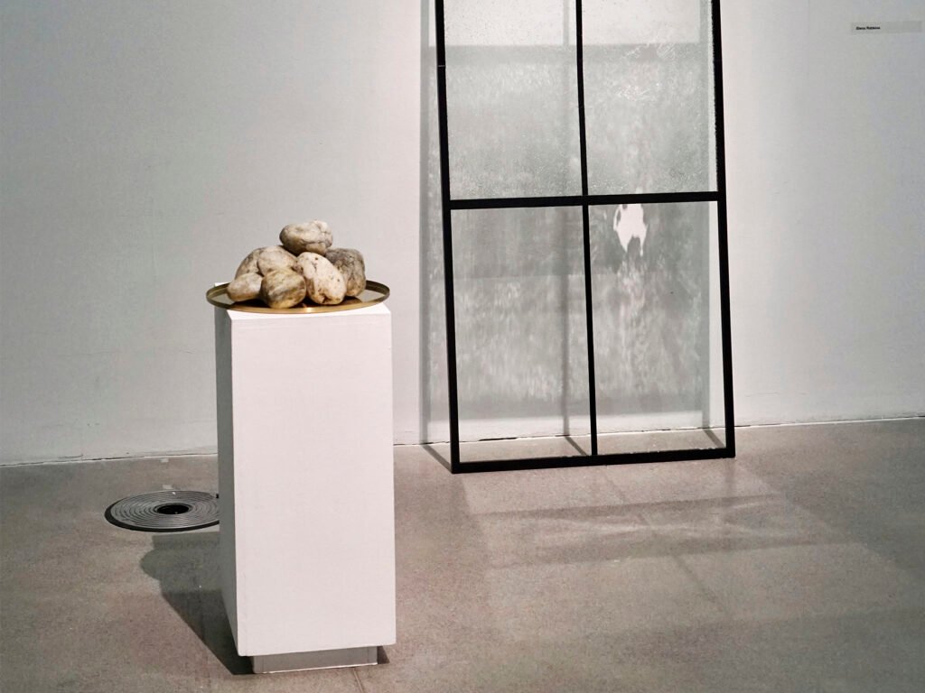 Нападнік кінуў некалькі камянёў у працу Алены Рабкінай, зробленую з загартаванага шкла.