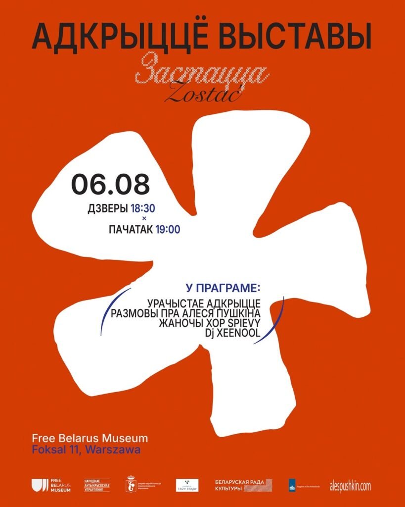 Як пісаў sekktor, урачыстае адкрыццё выставы “Застацца / Zostać” адбудзецца 6 жніўня ў двары варшаўскага Free Belarus Museum (Foksal 11). Збор а 18:30, пачатак а 19:00.
