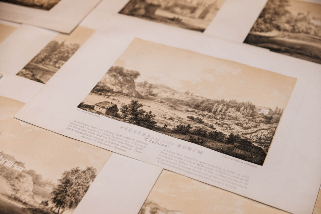 19 з 30 літаграфій прысвечаныя краявідам і архітэктурным помнікам у межах сучаснай Беларусі, астатнія — адносяцца да сучасных Літвы, Украіны і Польшчы.