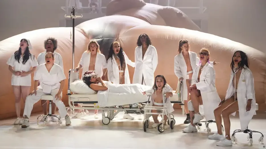 Увесь гэты падбор мастацкай мовы адбыўся натуральна. Мы працытавалі перфоманс Light – Dark Улая і Абрамовіч, калі яны білі адзін аднаму па твары – “Slap”. А “Clap” – гэта пра апладысменты, і тут таксама шмат сэнсавых нагрузак: і само тое, што дзеянне адбываецца ў тэатры, і механізмы ўхвалення альбо адмены кагосьці грамадствам, увесь гэты сацыяльны прэсінг: “Ты павінен ці павінна адмяніць Макса Каржа. Адмяніла? Малайчынка! Добрая беларуска, рэфлексуеш”.